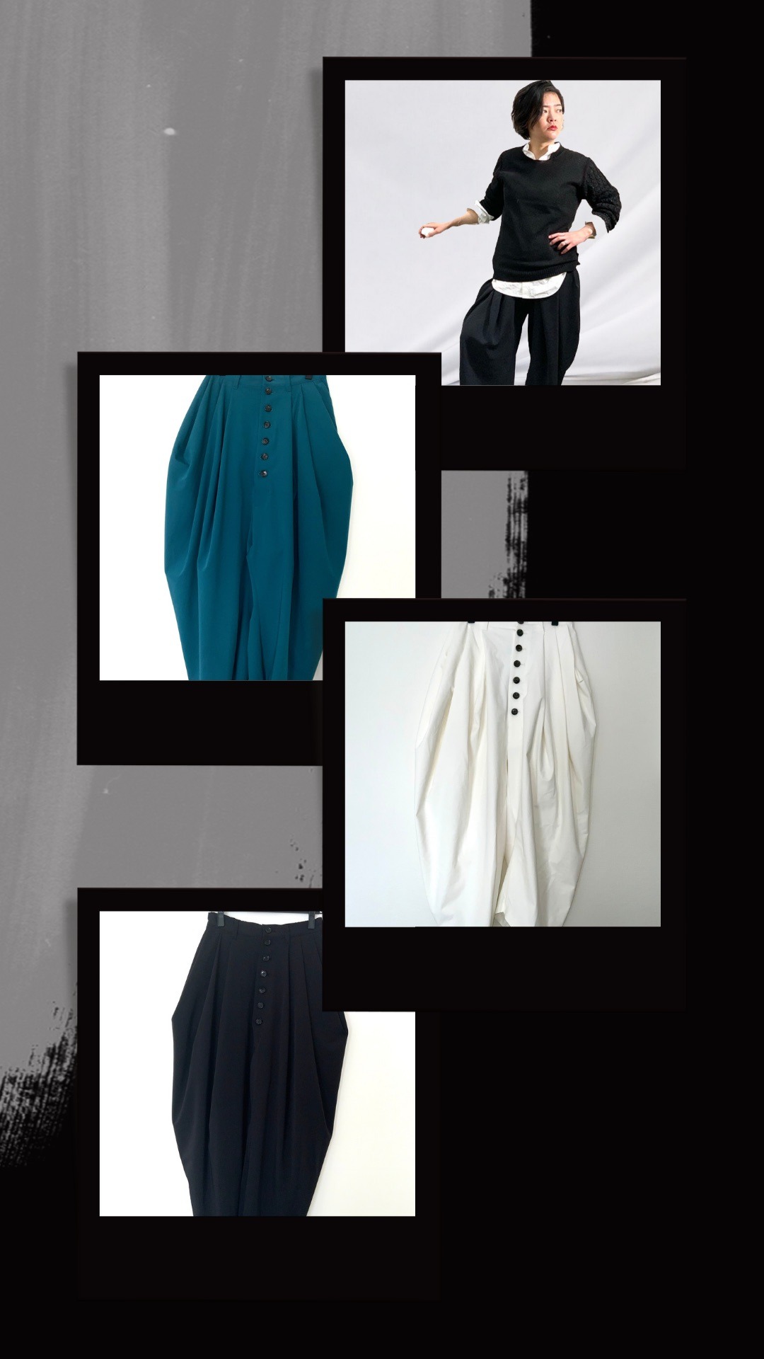 前に6つ後ろに6つタックが入っているので、綺麗にドレープがよるパンツです。