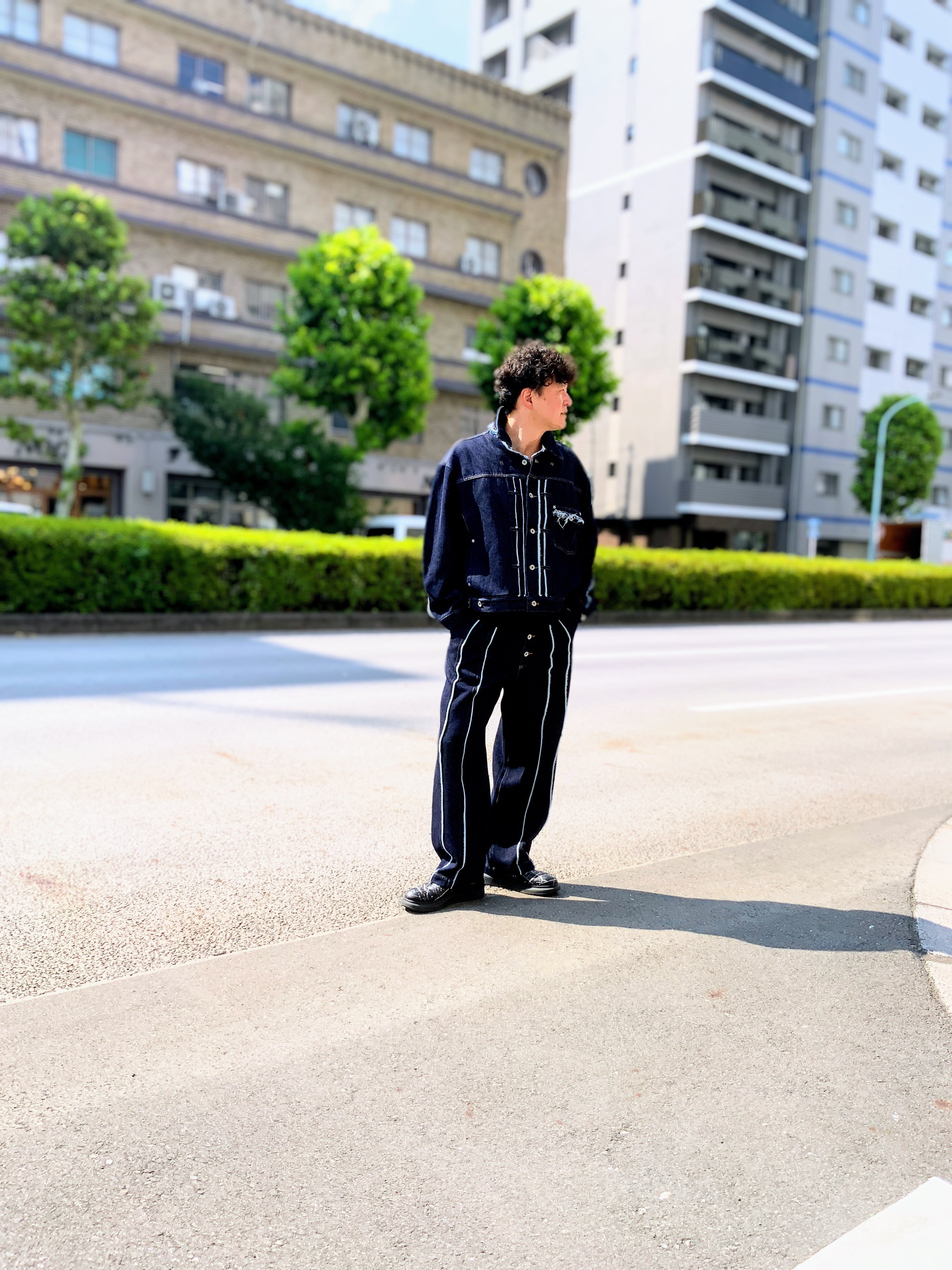 風合いのある独自のデニムです。経糸に8番手インディゴ