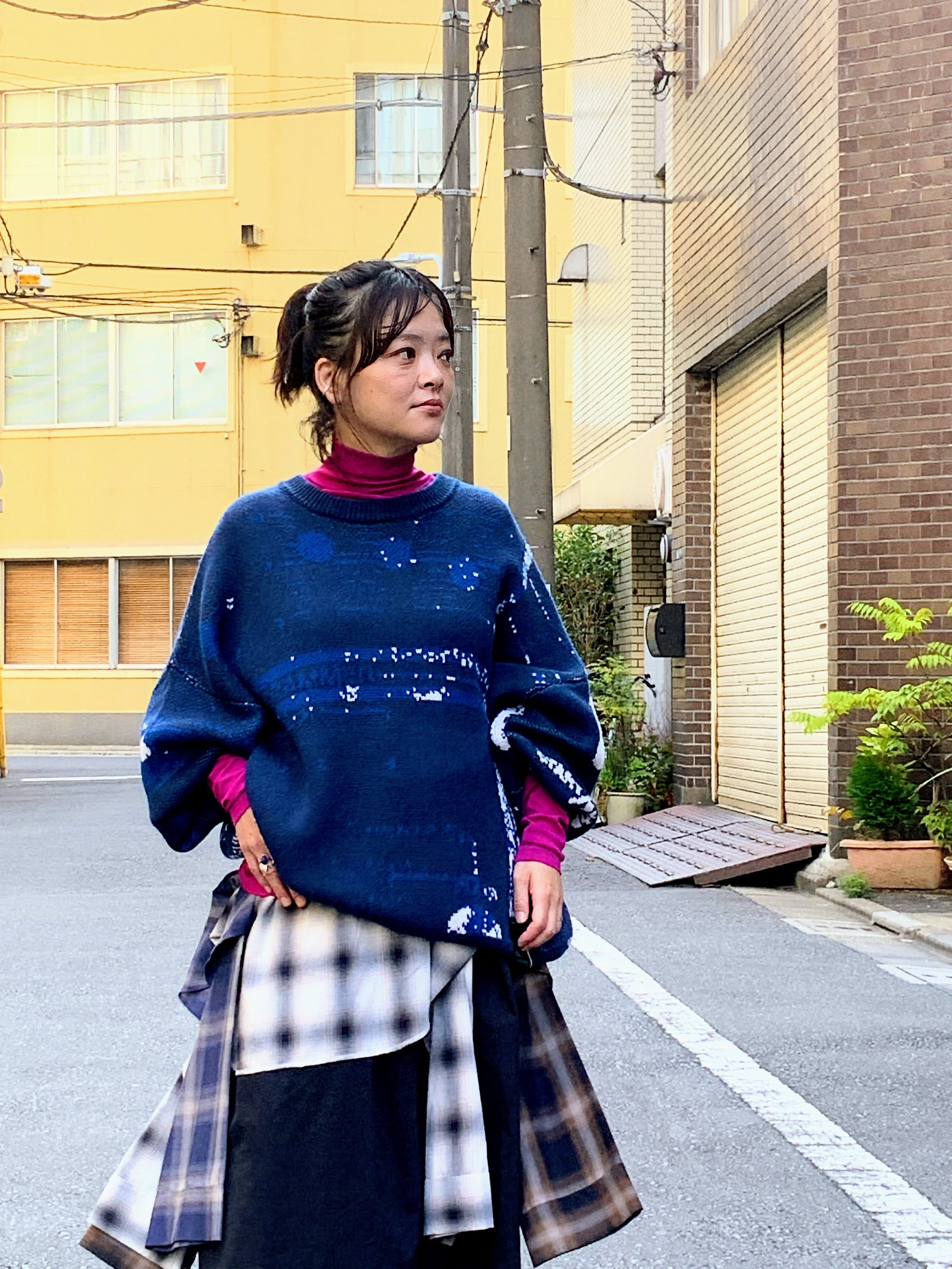ジャガードプルオーバーニット ブルー