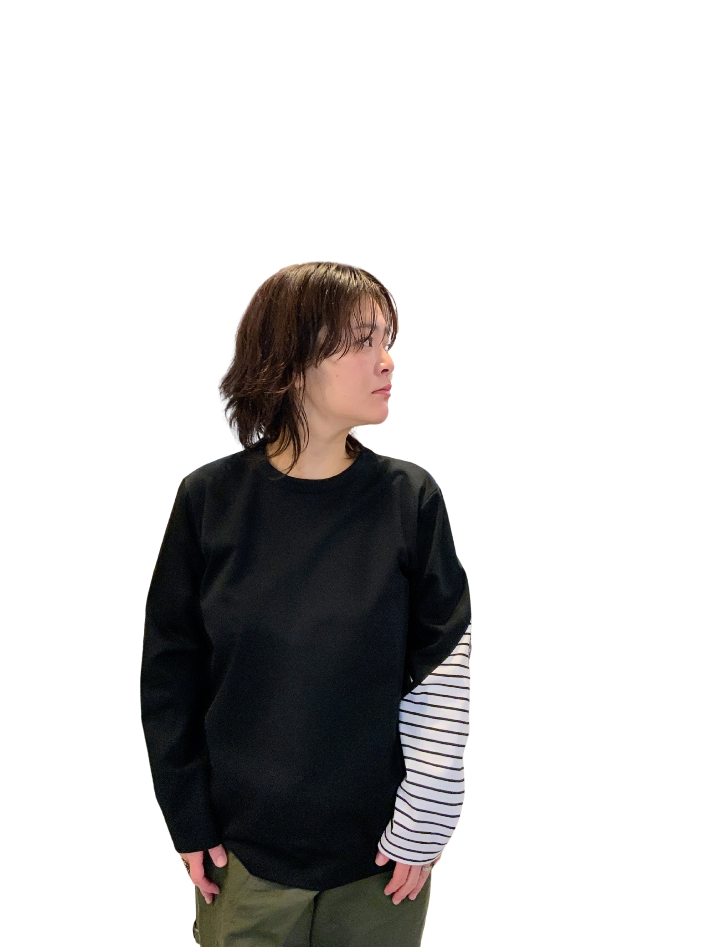 袖の一部分を切り替え動きのあるデザインにし、ありそうで無いカットソーで着心地が良く、生地も丈夫でしなやかなのでヘビーに使えるアイテムです。