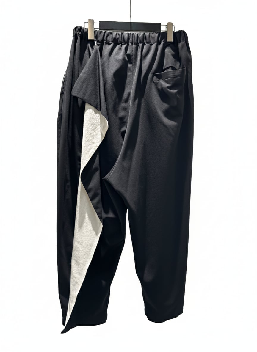 左足の前と後ろにフラップがあることで、表情が豊かになり、歩くたびにイメージを変えてくれるパンツです。