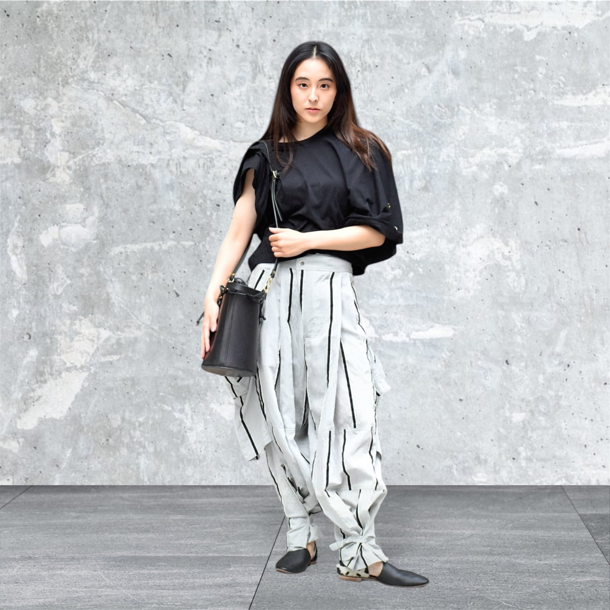 サイズ〜ウエスト66cm~88cm(後ろゴム)、股上40cm、着丈100cm(着丈は長くても裾を絞れるデザインなので問題ありません)