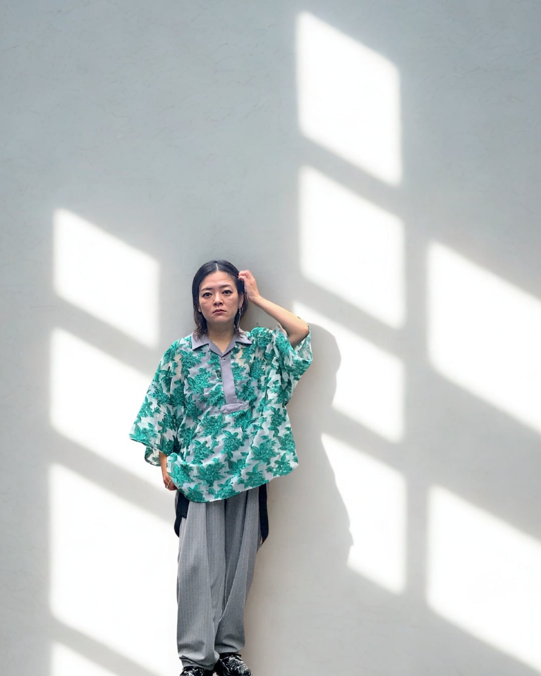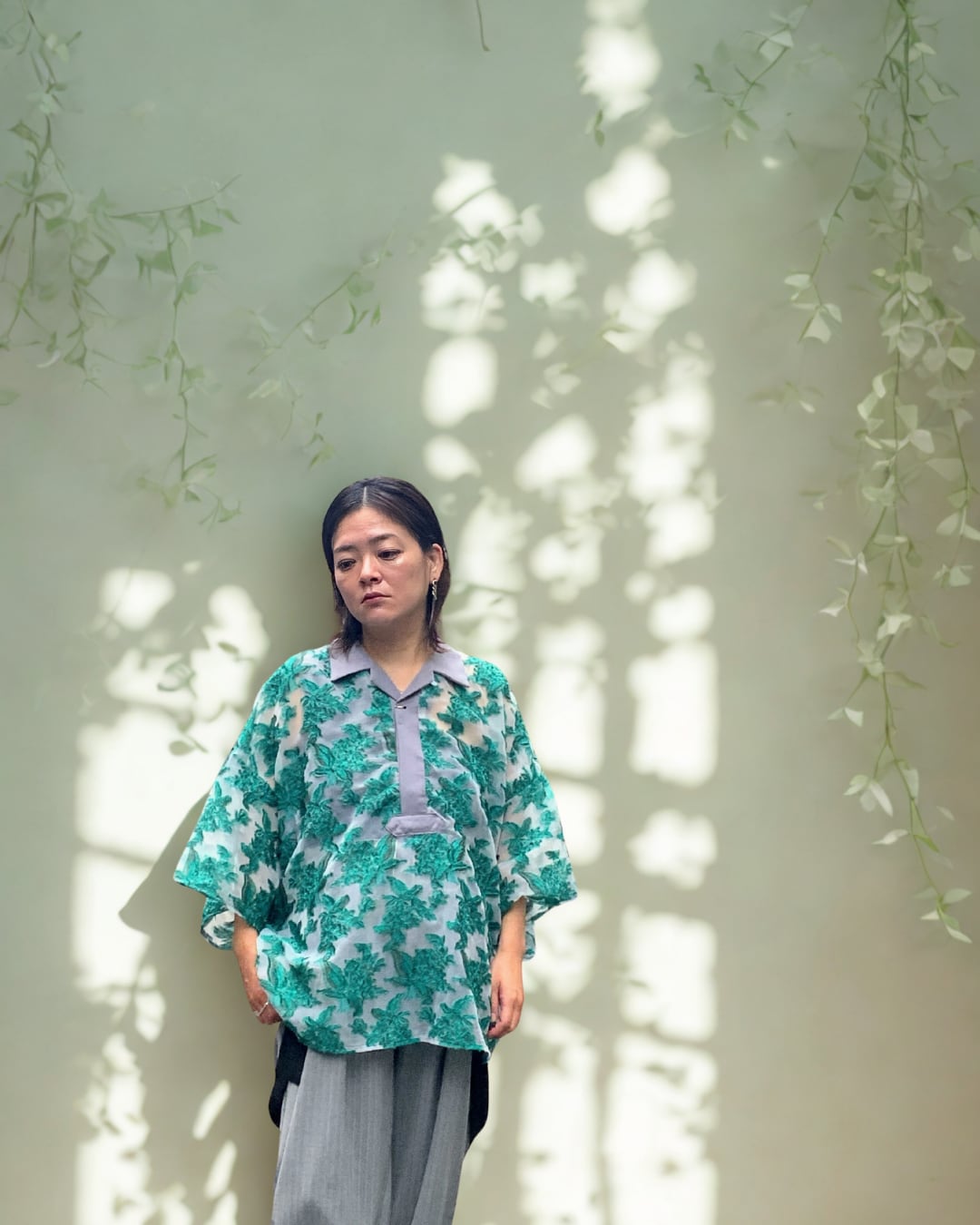 メッシュジャガードスキッパーシャツ グリーン