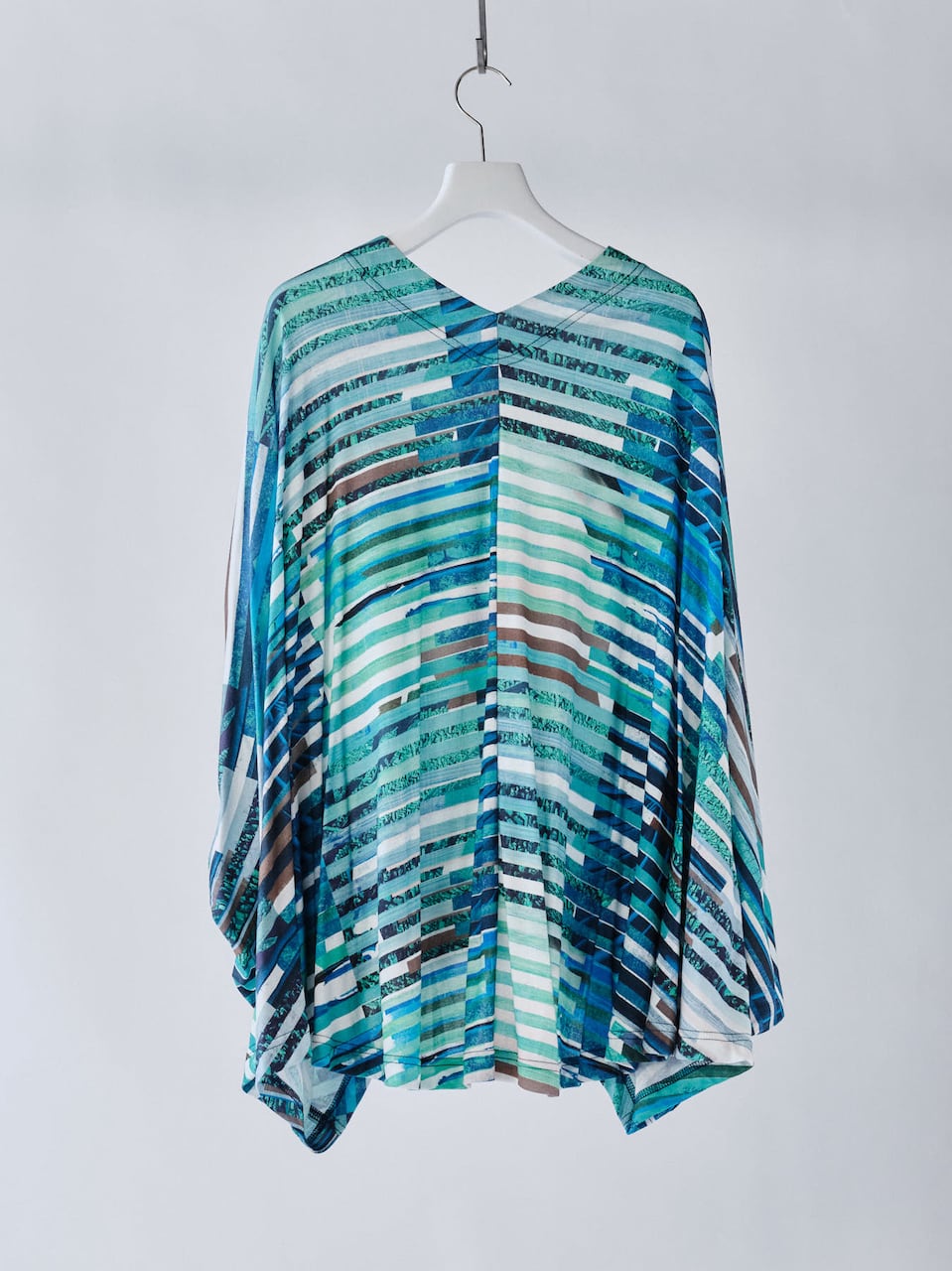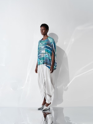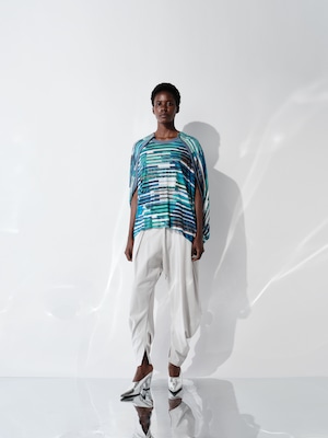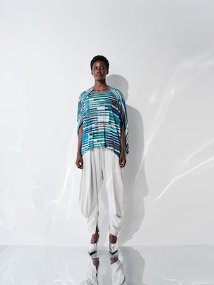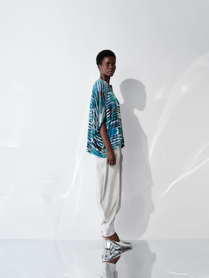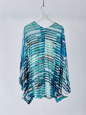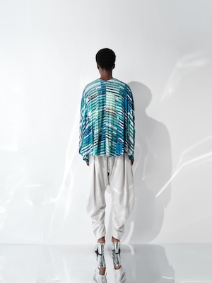 ハイブリットモーションプリント スムースオーバーサイズトップ ブルー×グリーン