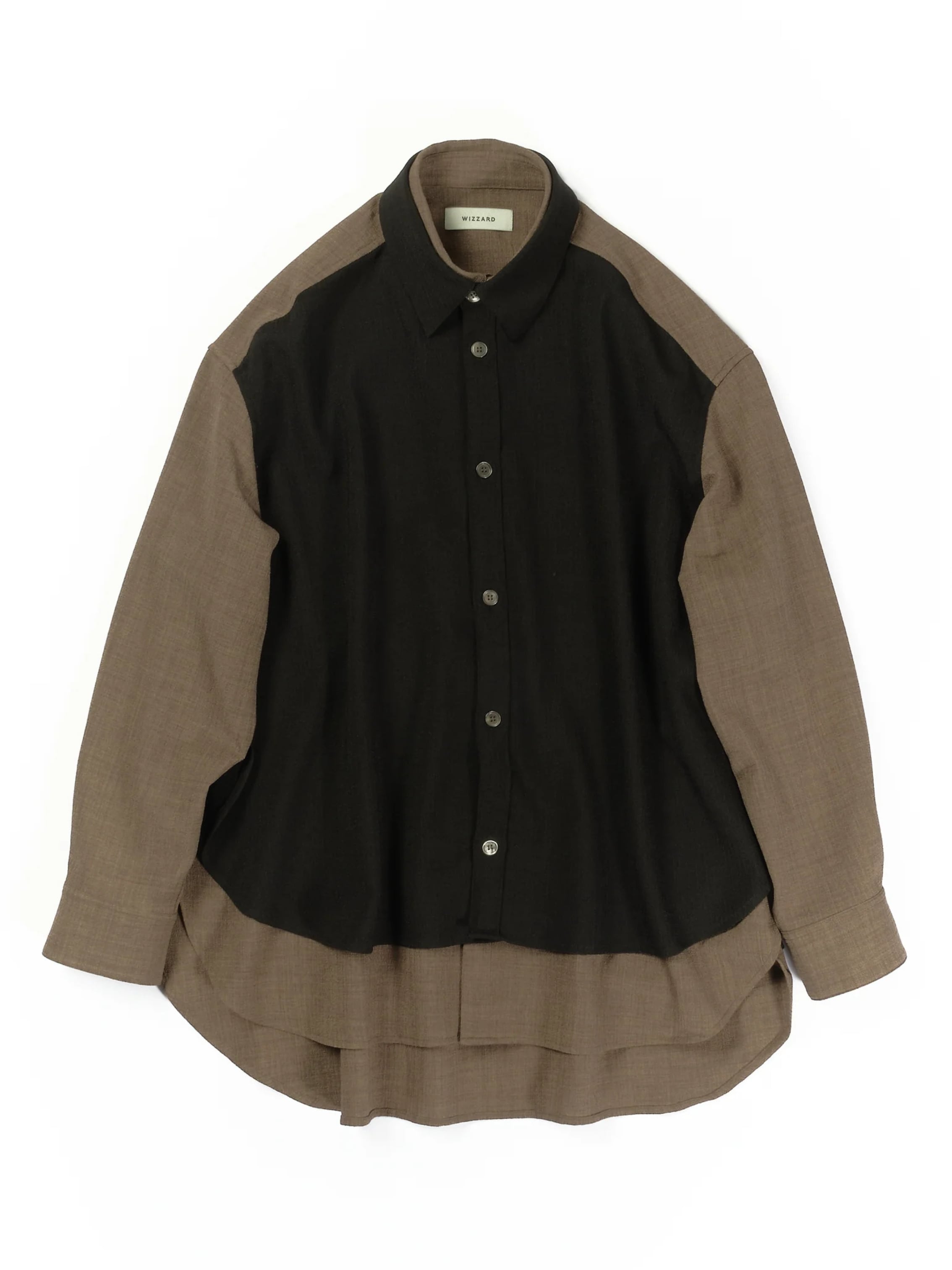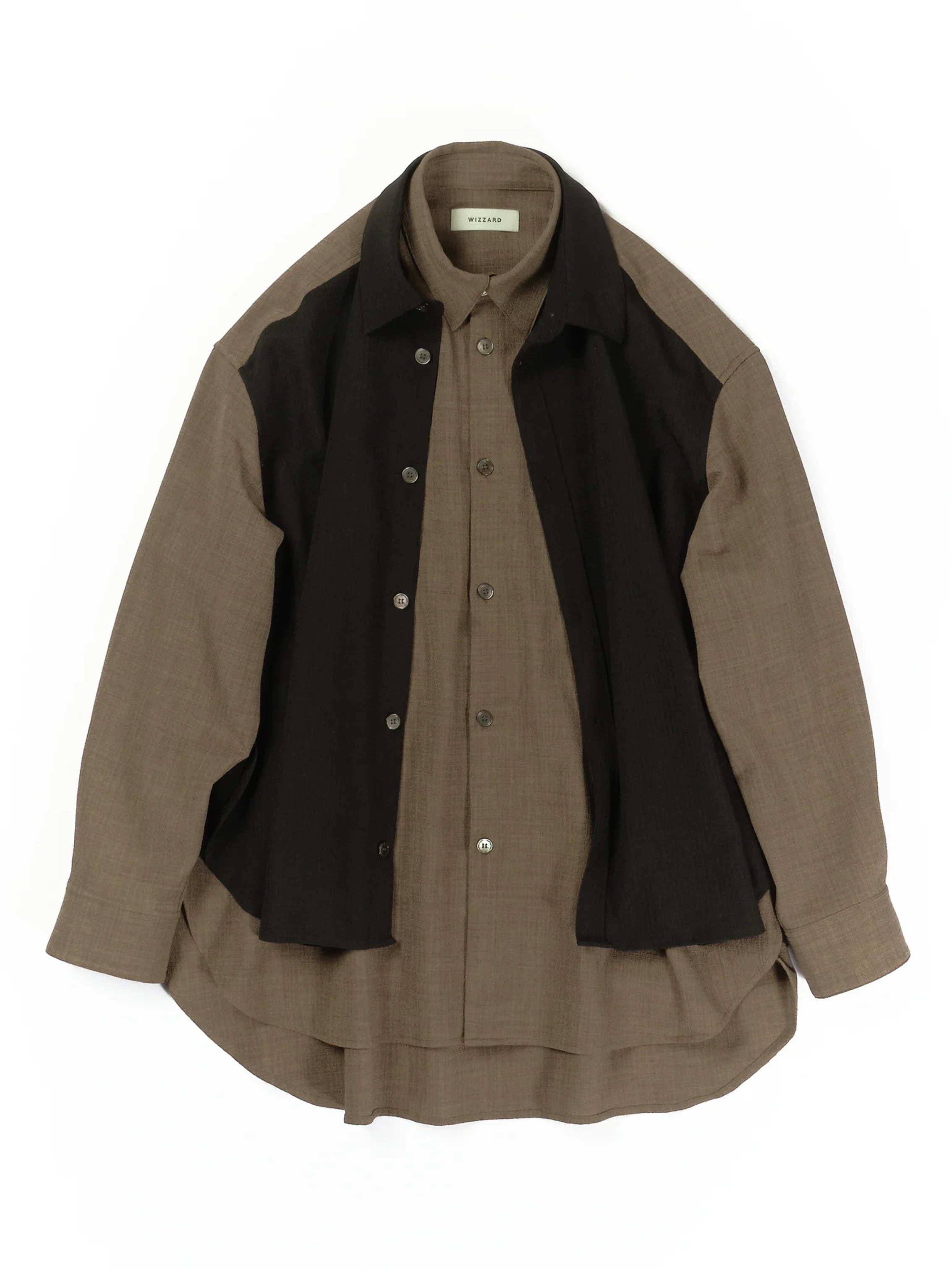 前見頃を2重にしたレイヤードシャツ。オーバーサイズでゆったりとした着心地です。