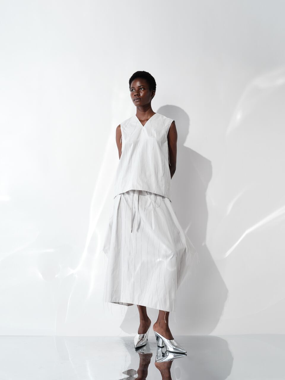 ストレスフリーな着心地と、計算されたフォルムの美しさを両立した一枚です。