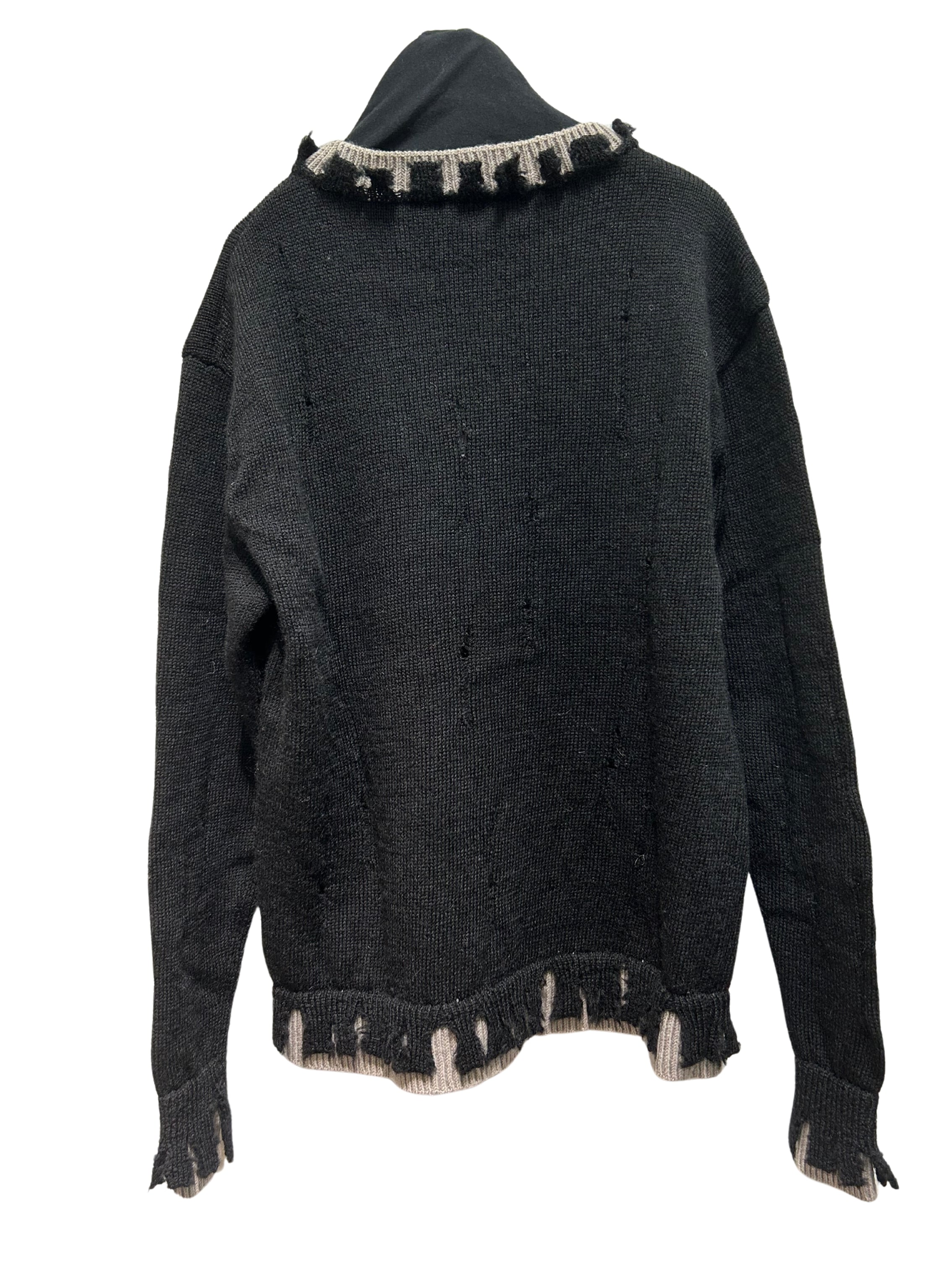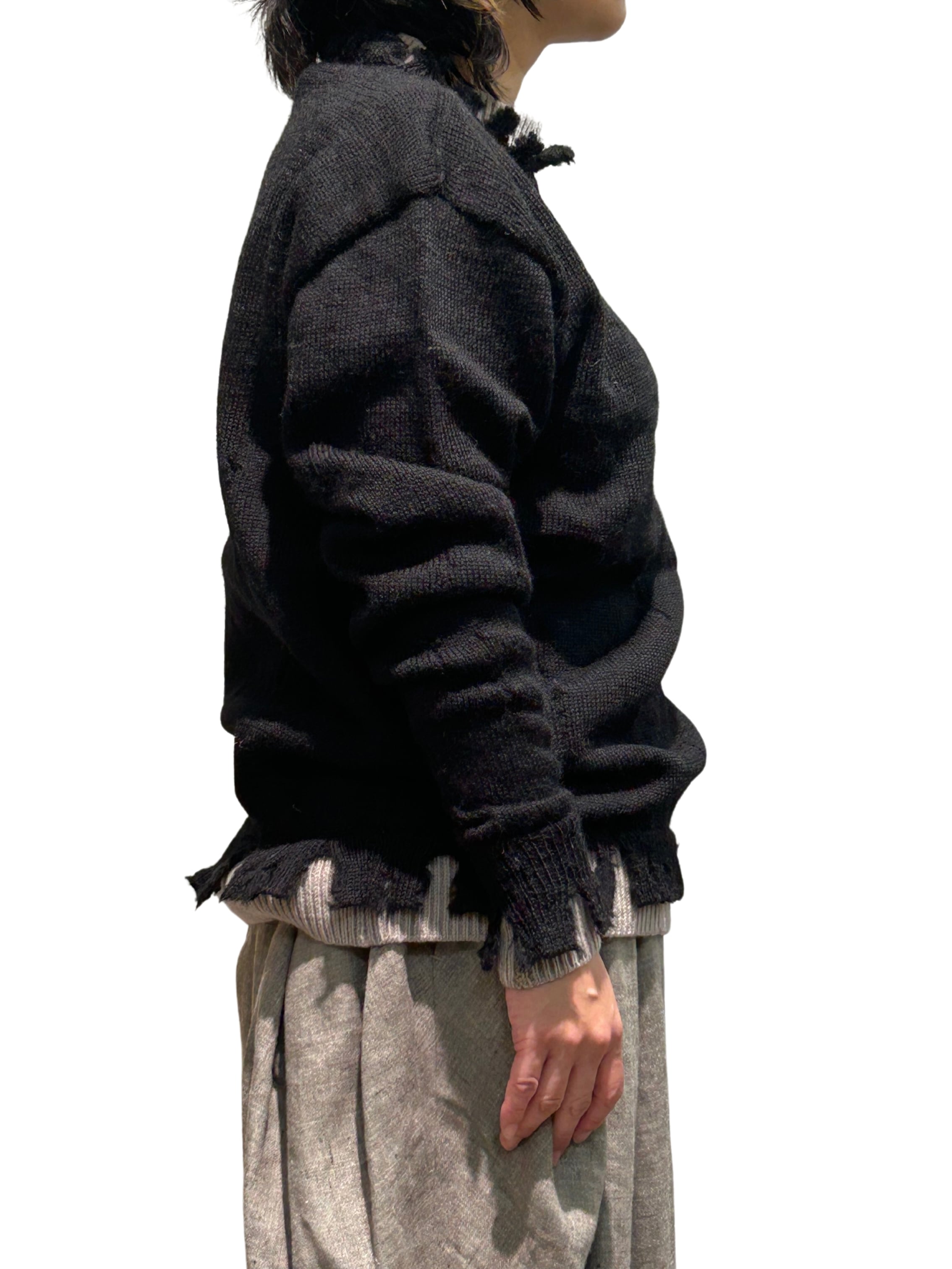 量産できない編み機で編んだ所々クラッシュさせたような編み方で編んだ動きのあるニット。